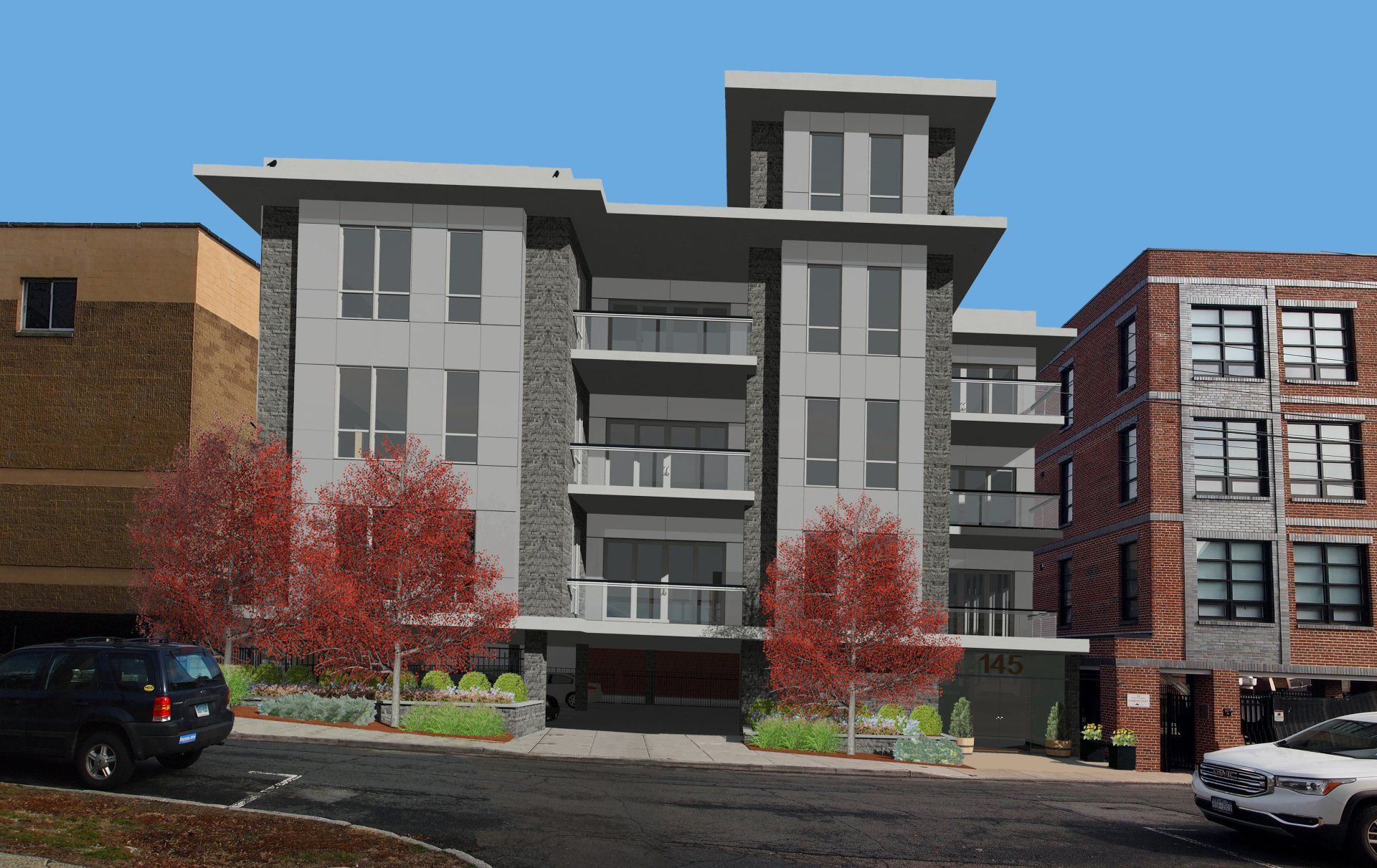 This 163-unit condominium has eight stories in Hartsdale, New York. The architect is Kenneth R. Nadler Consulting, and it is currently valued at $50 million. Logistics mandated that the plaza be reinforced for the staging of the job. Additionally, because of the zoning, columns could not continue through to the parking level and a transfer beam floor was necessary.